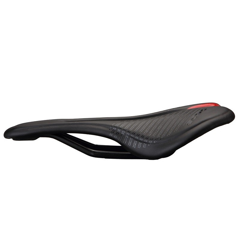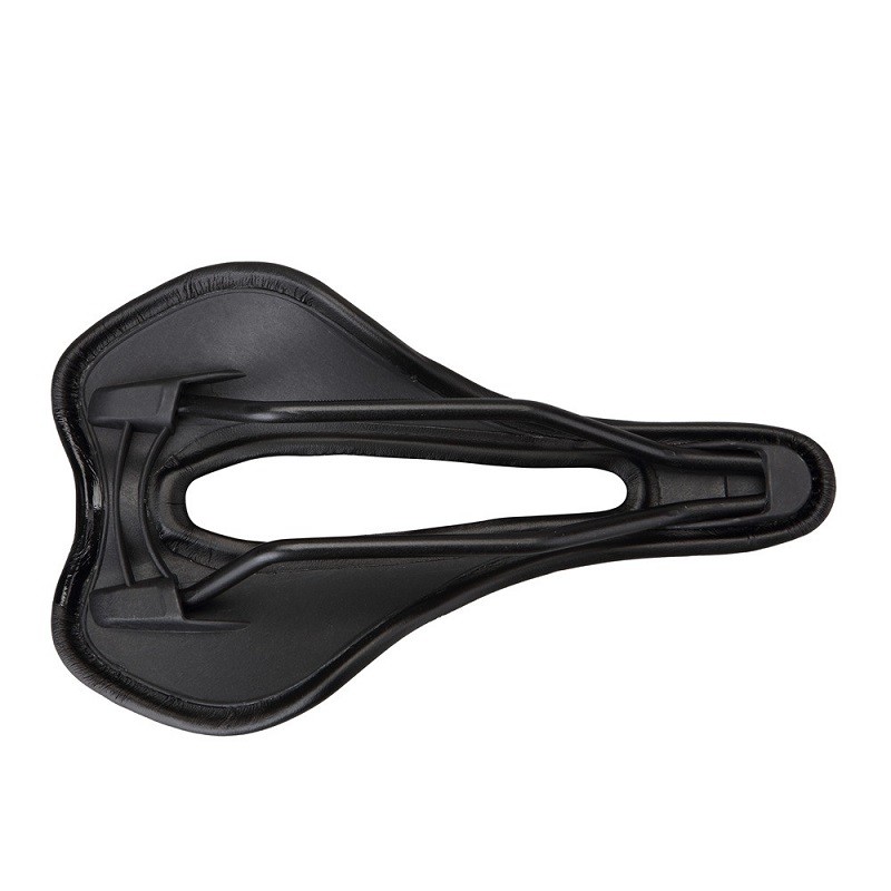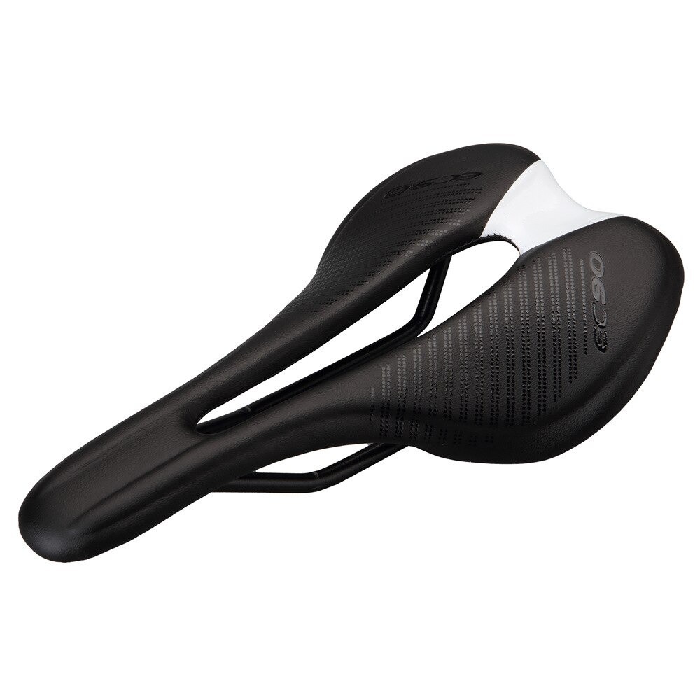 The bicycle saddle is ergonomically shaped and ensures you a pleasant ride. It is covered with artificial leather and feels pleasant to the touch. The dimensions of the saddle are 250 x 143 mm.