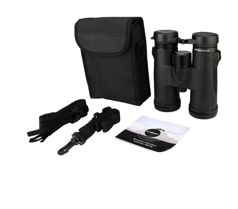 Package Contents: 1x binoculars, 1x case, 1x cleaning cloth, 1x eyepiece cover, 1x objective cover