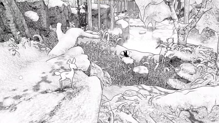 Immerse yourself in the stunningly beautiful black-and-white world of Blanc – completely hand-drawn on paper in 2D before coming to life in 3D. Blanc focuses on the journey and experiences of the animals with gameplay and storytelling without text, allowing players to fully immerse themselves in its wonderful world.