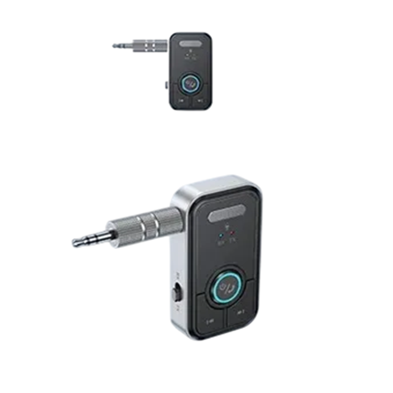 Multifunctional Bluetooth 5.3 adapter with USB-C and AUX connectors, 9 hours battery life, stable connection, and compatibility with TVs, PCs, and car radios. Full description