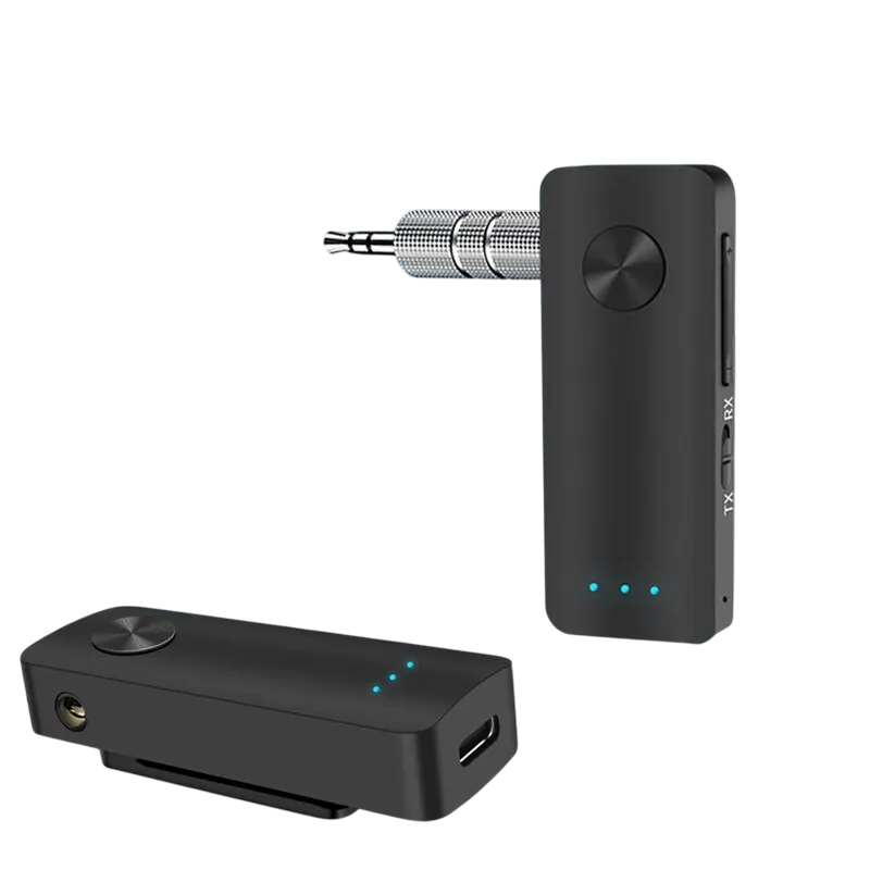 This compact Bluetooth 5.3 adapter 2-in-1 allows you to easily and quickly convert any audio device with a 3.5mm input into a modern wireless solution. With two modes – transmitting (TX) and receiving (RX) – you can use it to stream music from your TV or computer to Bluetooth headphones as well as to receive signals from your phone to your car radio or speaker. Stereo music transmission and handsfree call functionality ensure convenient use at home, in the car, and on the go. The adapter offers 4–6 hours of battery life on a single charge, supports all common Bluetooth devices, and operates within a range of up to 9 metres. Connection is easy thanks to the 3.5mm AUX jack and USB port for power supply.