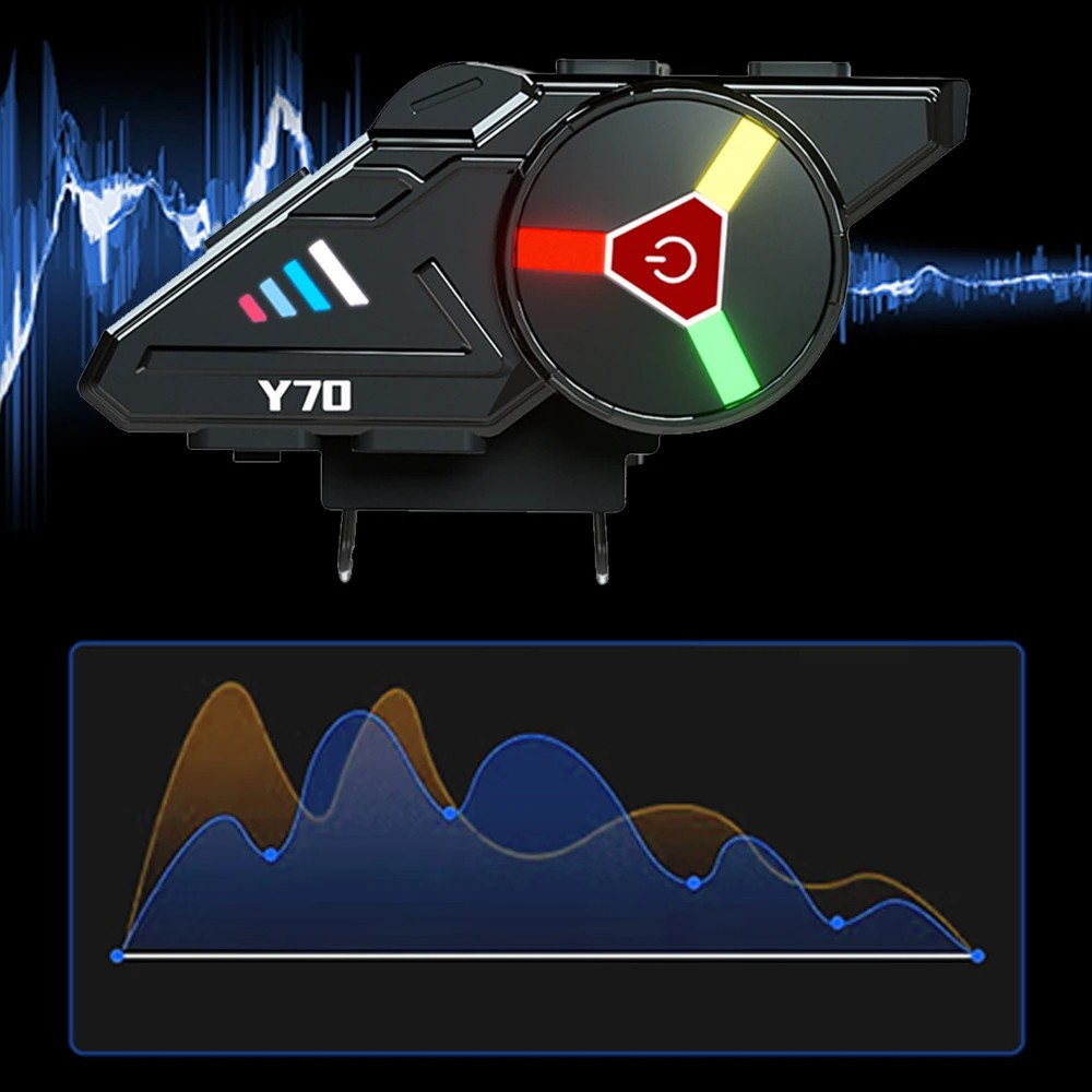 Bluetooth Headset Y70 with RGB Lighting for Helmets, Bluetooth 5.3, IPX6, HD Sound, Voice Assistant Support