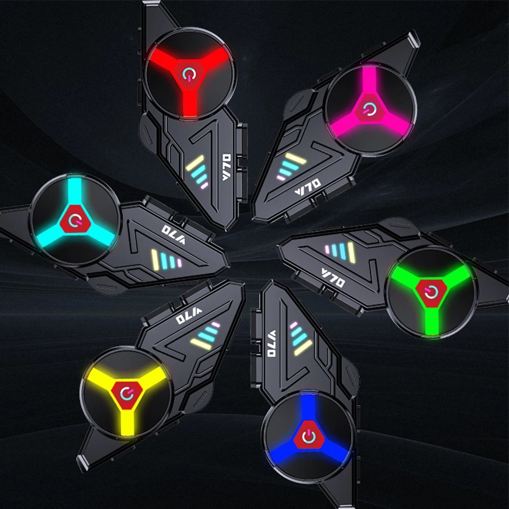 Motorcycle Bluetooth Headset Y70 with RGB Backlighting, Bluetooth 5.3, IPX6, HD Sound, and Voice Control