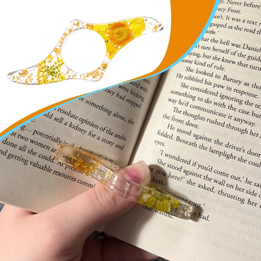 Bookmark with Thumb Hole 8.5 × 3.5 cm One-Handed Reading Floral Design Reading Aid