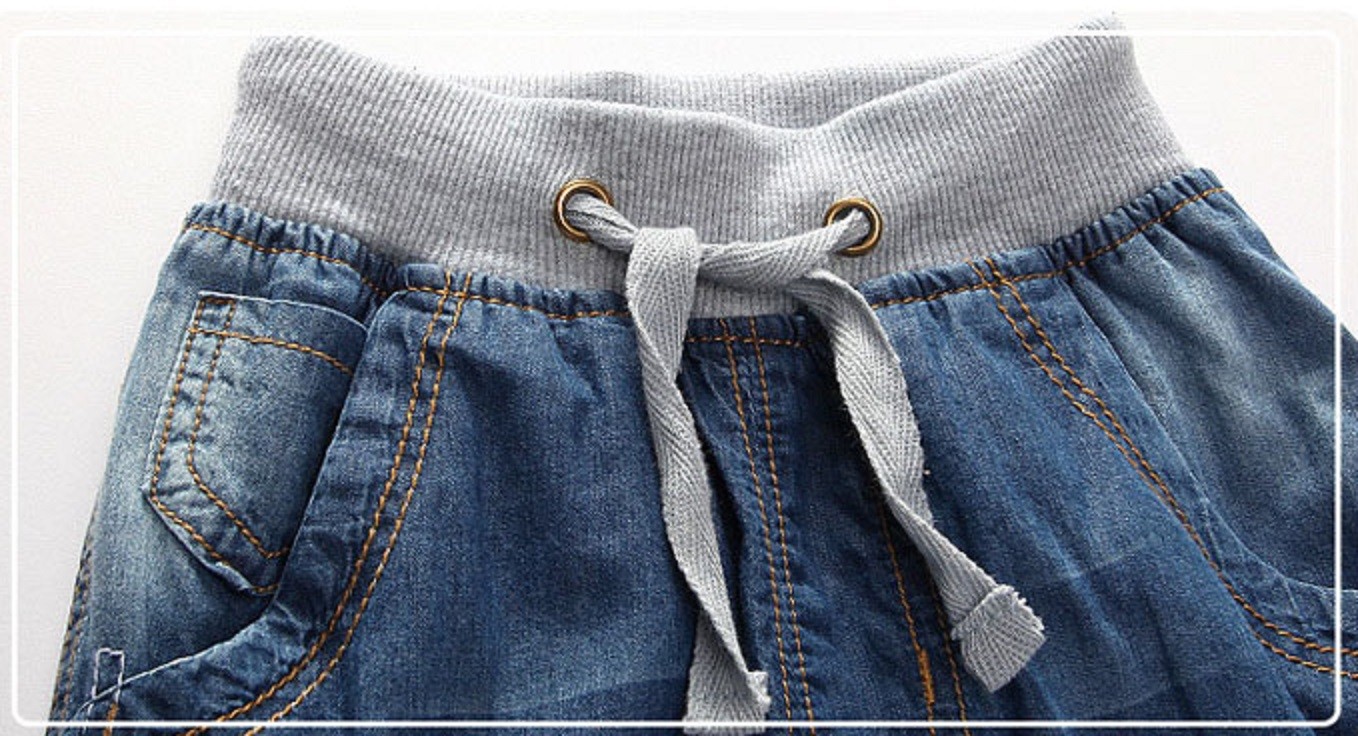 Beautiful denim shorts that fasten not with a button or zip, but simply with drawstrings.