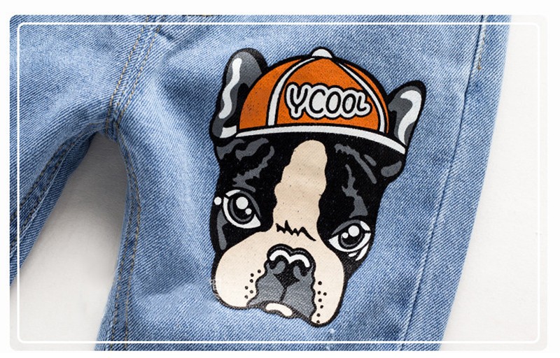 Boys' Jeans with Dog Cartoon - Blue