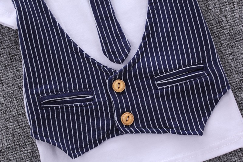 Dress your little boy elegantly with this suit style set featuring a tie.