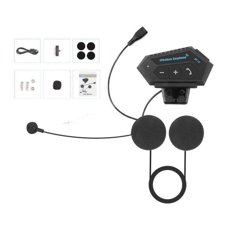 Durable BT12 intercom with soft microphone, Bluetooth 5.0, voice control, automatic call answering and up to 15 hours of music playback. Full description