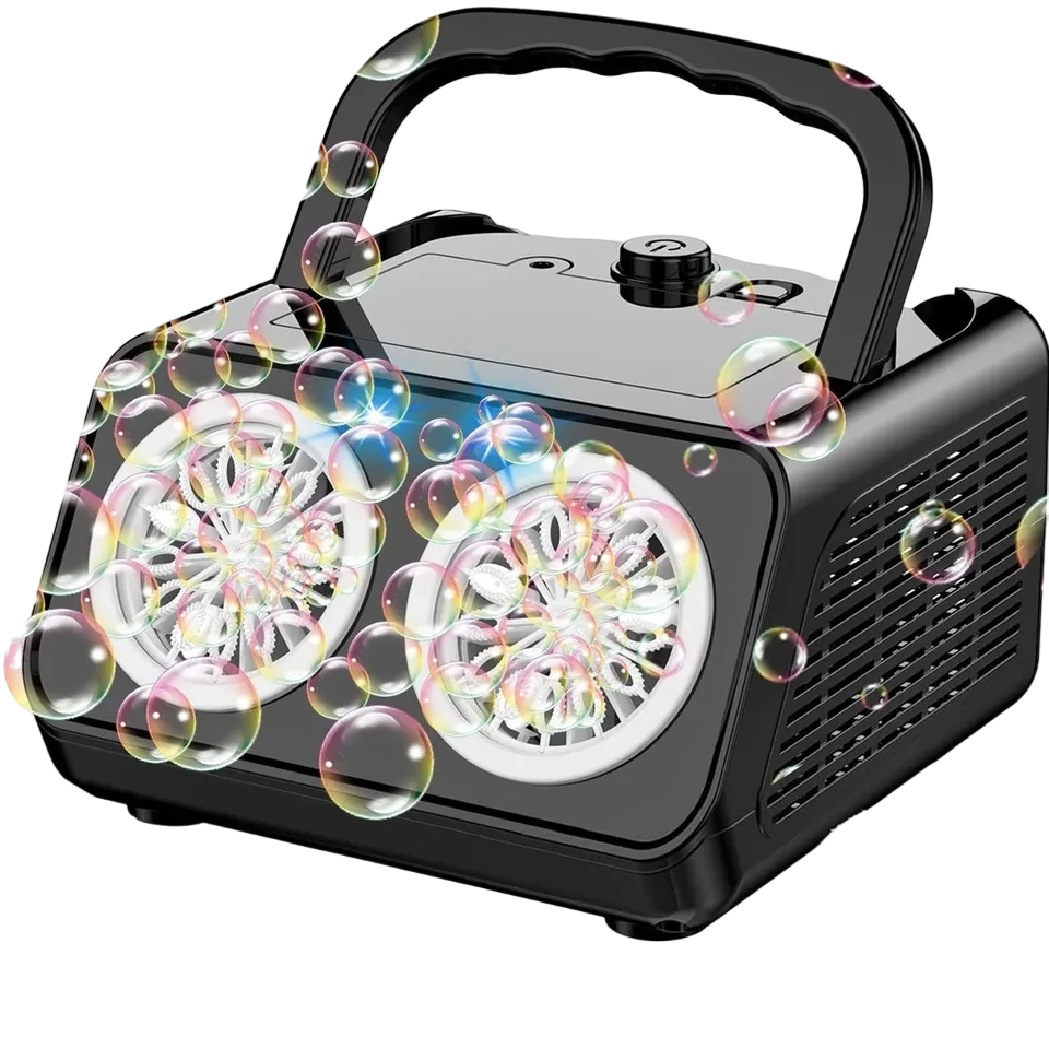 The bubble machine is an excellent addition to any fun event where you want to create a joyful and playful atmosphere. With two fans, it can produce hundreds of bubbles in just a few minutes, ensuring endless fun for children of all ages. Its compact and lightweight design allows for easy transport and use, whether at home, in the garden, or at the park.
