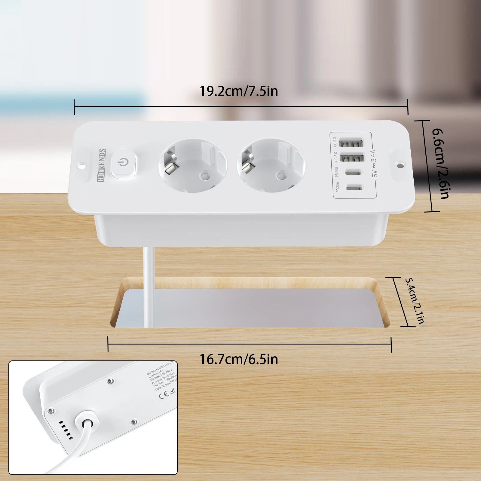 Are you looking for a practical and modern power solution for your home or office? This built-in table socket EU allows you to elegantly power and charge multiple devices simultaneously without unnecessary clutter. It includes 2 standard AC sockets, 2 USB-A ports, and 2 USB-C ports with PD20W technology for fast and safe charging. With a universal input voltage of 100–240 V and DC output of 5V/3.4A, it handles devices in various electrical networks. The built-in 2-metre power cable makes installation easier even in hard-to-reach places and ensures sufficient flexibility.