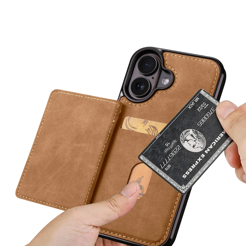 • Built-in magnetic wallet with space for cards