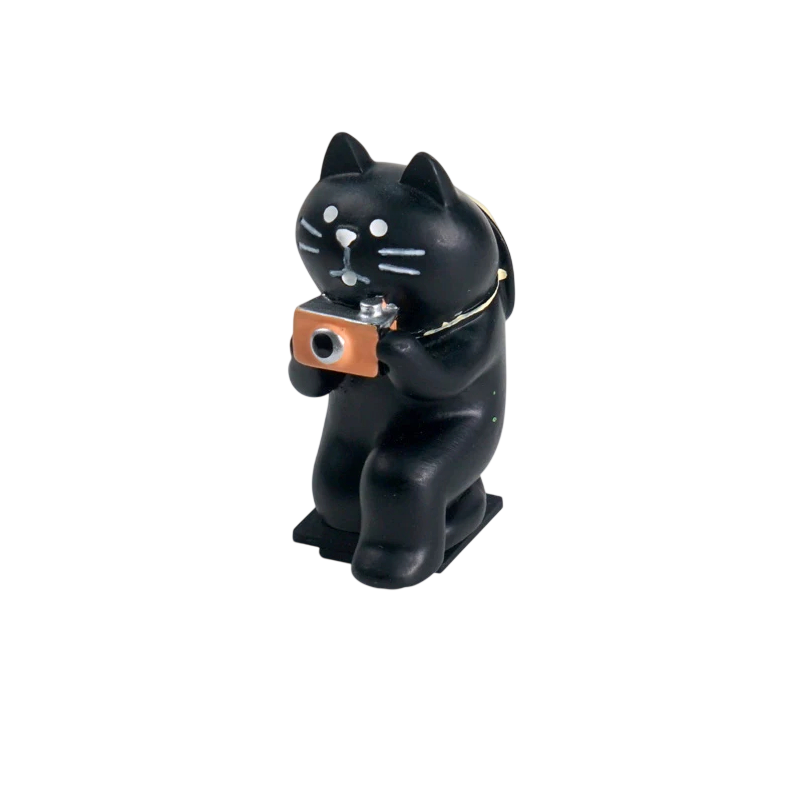 • Decorative design of a kneeling cat with a camera