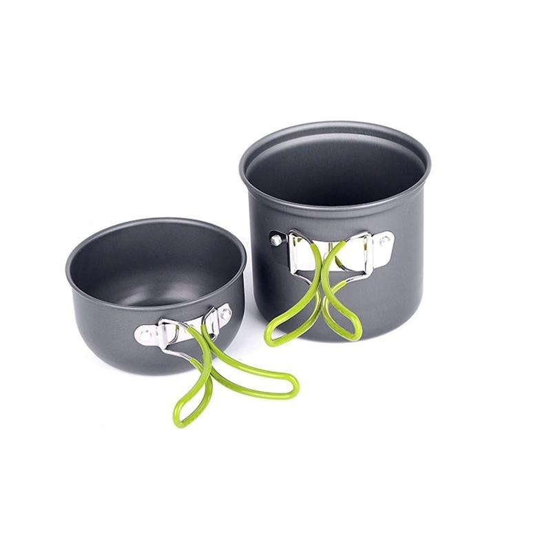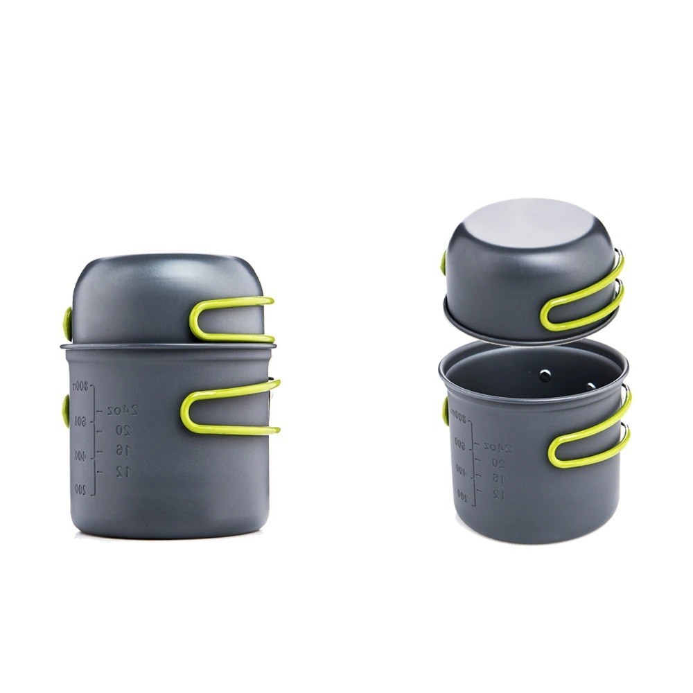 Are you looking for an easily portable and lightweight camping cookware set? Look no further than this set of two pots. These collapsible pots are perfect for travel and feature a handle that makes them easy to carry. They are ideal for hiking as they can be used as a multifunctional tool. Whether you are cooking over a fire or boiling water for coffee, tea, or hot chocolate, these pots are perfect for you. The pots can be nested together.