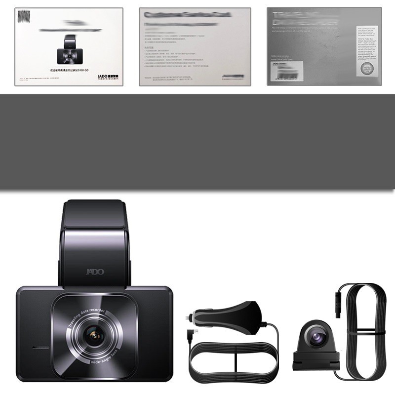 Package Contents: 1x front camera, 1x rear camera, 1x charger, 1x user manual