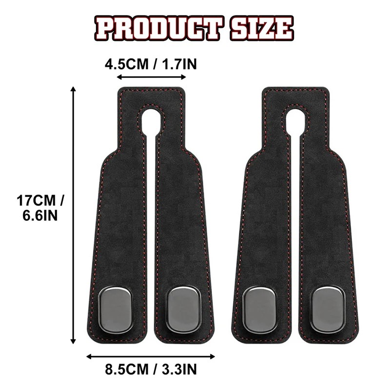 This car headrest hook is a practical and elegant solution for storing your belongings while driving. It features double metal endings, allowing you to hang multiple items at once. This makes it ideal for handbags, bags, clothing, backpacks or other small items that you need to have on hand while keeping them safely stored.