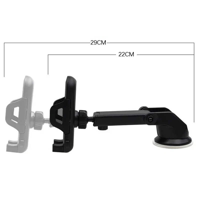 Car Mobile Phone Holder with Suction Cup Telescopic Arm 12.2–23.7 cm Rotating Joint 360° Adjustable Angle Dashboard Glass