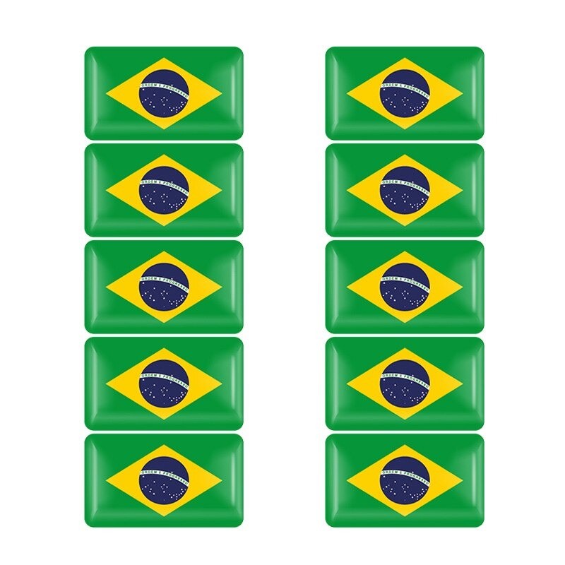 Car sticker featuring the Brazilian flag. Strong and quick attachment. Dimensions 18 x 11 mm. Sticker in a pack of 10 pcs.