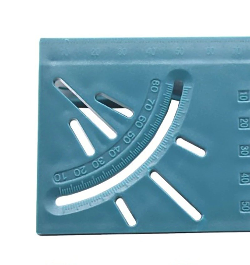 Angled carpenter's ruler measuring 20 x 6.5 x 7 cm. Ruler, hole for pencil and drill bit, and much more that this product offers. Full description