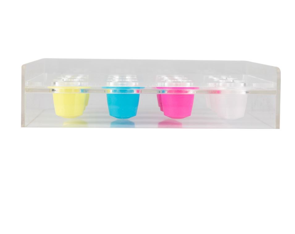 Insert the capsules and cover them with the lid with holes - you can easily and cleanly fill the capsules.