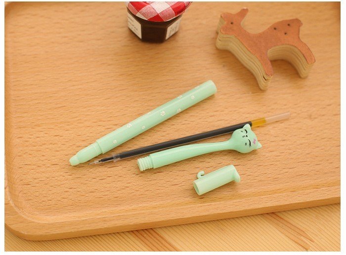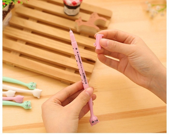 We have a 0.5 mm fine school pen with a cat design for comfortable writing.