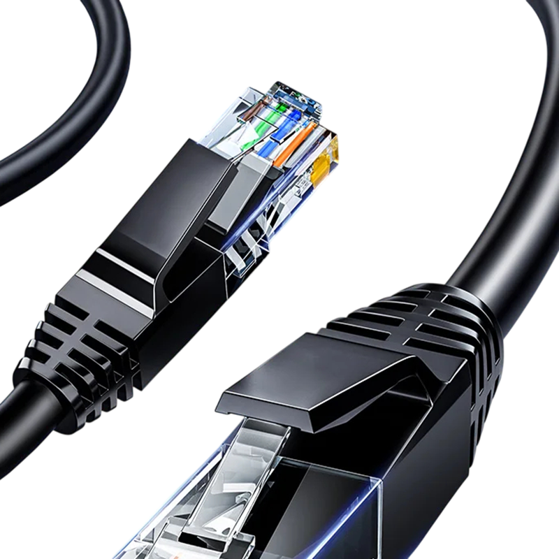 Shielded Cat6 Ethernet cable with RJ45 connectors for stable gigabit connection. Suitable for home and office network setups. Full description