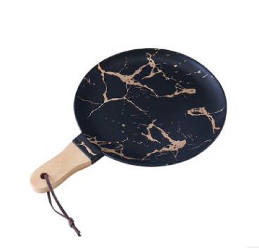 The tray is adorned with a marbled pattern.
