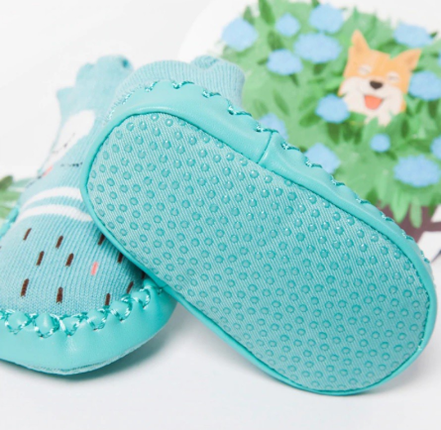 The booties have a non-slip sole.