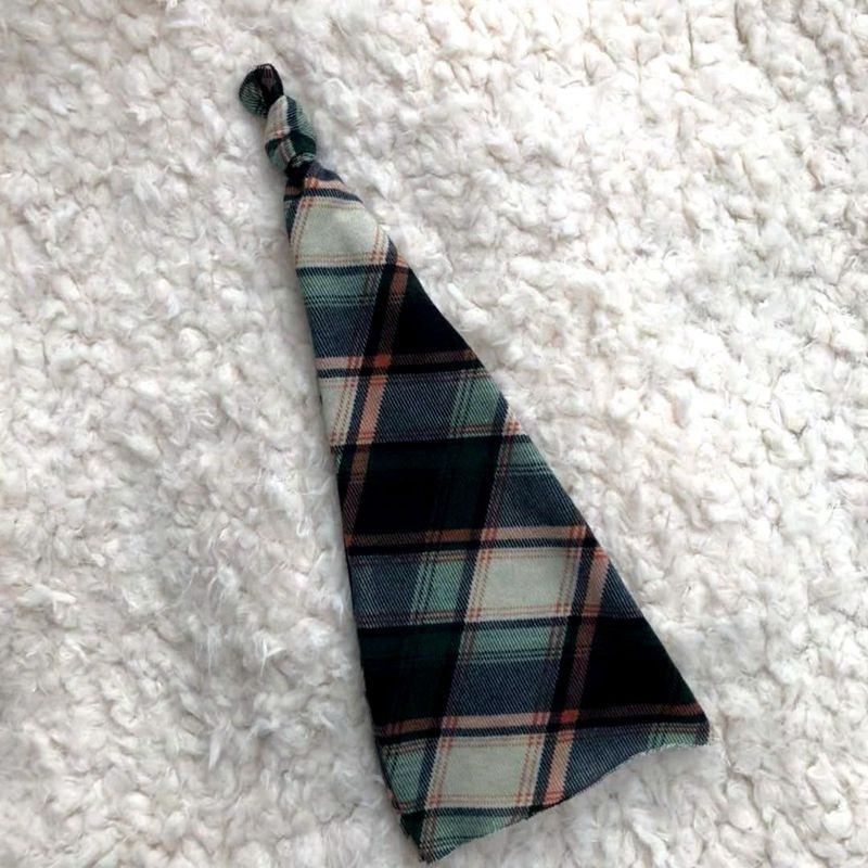Long children's hat with a checked pattern.