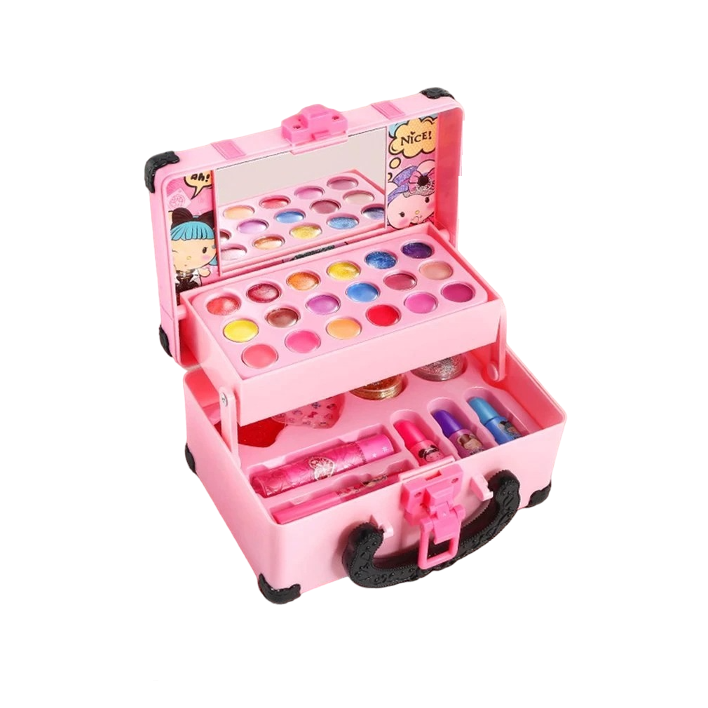 This amazing case will create the perfect make-up every girl dreams of! It includes eyeshadows, lip gloss, lipstick, an eyebrow brush, nail polish, and many other items that every young girl will appreciate. Perfect as a gift for any occasion or for Christmas. Washable material.