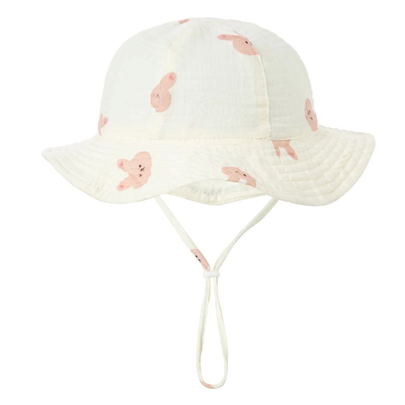 This adorable children's hat featuring a pink rabbit design is the perfect accessory for babies during warm days. The hat is made from soft and breathable cotton, which is gentle on the baby's sensitive skin and provides maximum comfort while wearing. The lightweight material helps prevent overheating of the head.