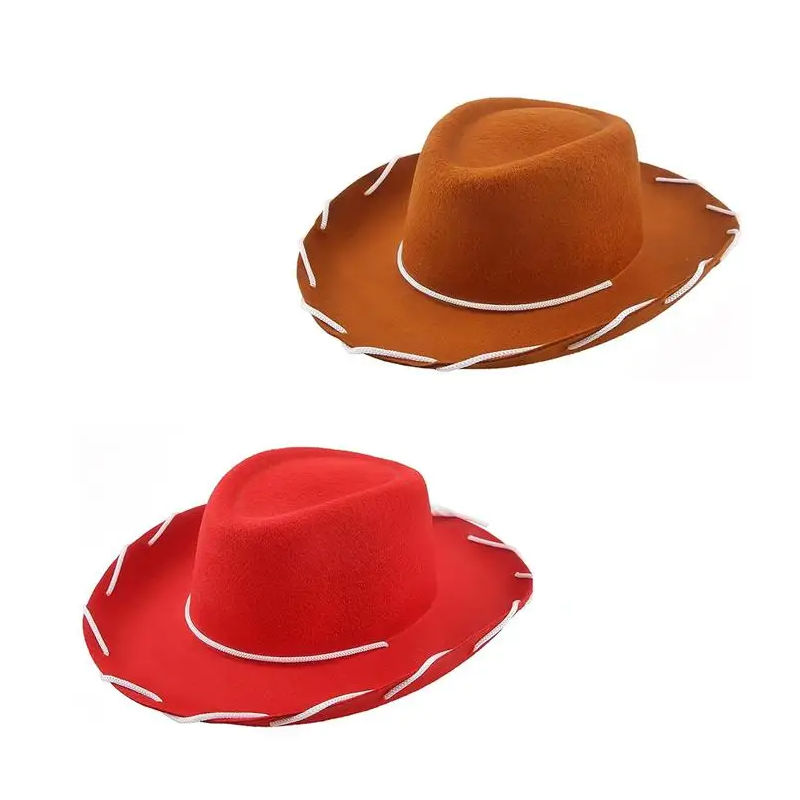 A stylish accessory for little cowboys and cowgirls featuring a large brim and cord decoration, perfect for carnivals, parties and themed games. Full description