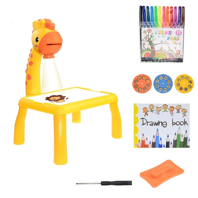 Contents of the package: 1x children's table, 3 projection slides (a total of 24 patterns), 1x drawing book, 1x set of markers