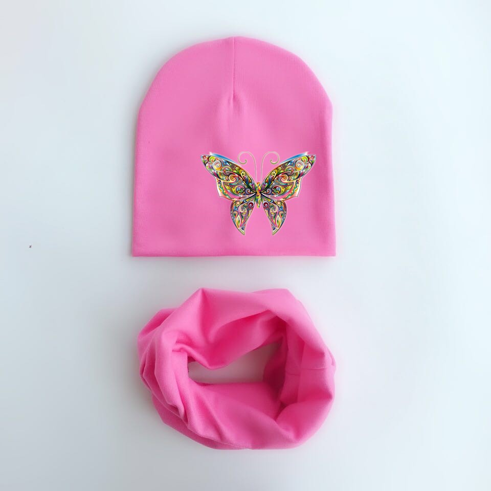 Children's Hat and Neck Warmer Set with Butterfly