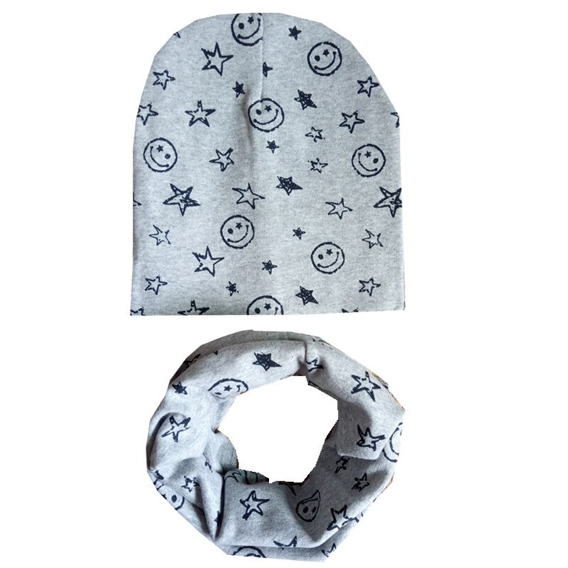 Children's Hat and Neck Warmer Set with Smiley Faces