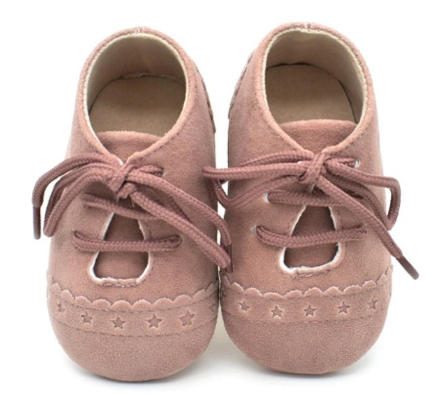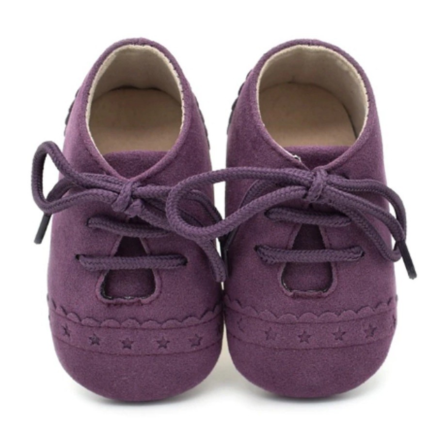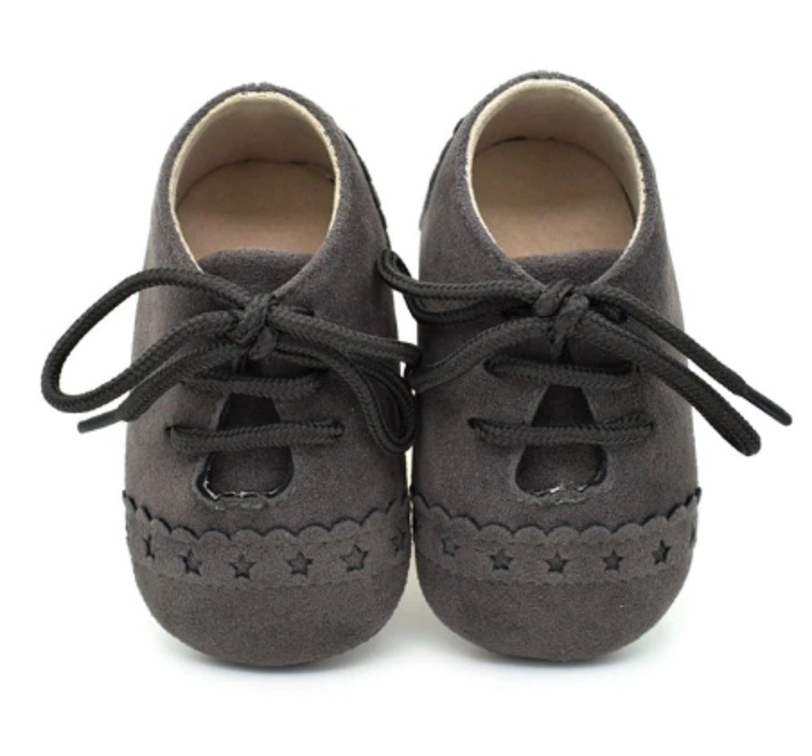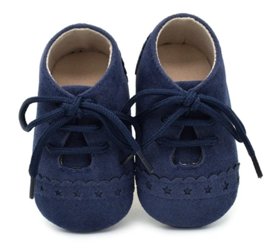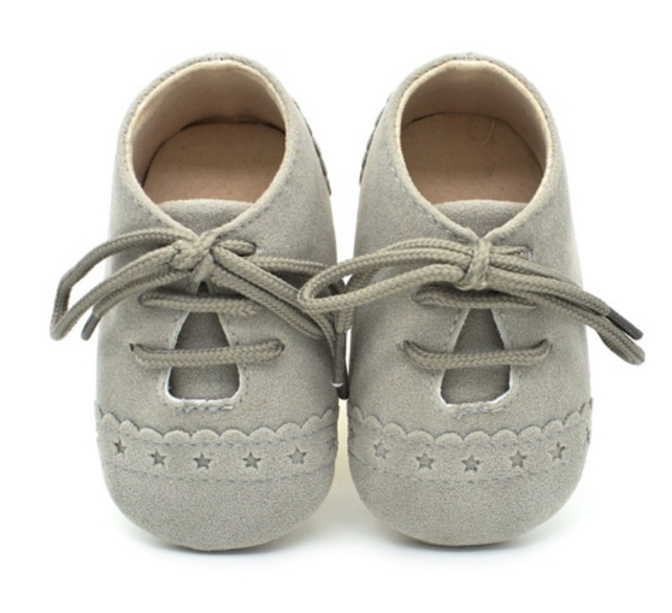 Children's leather shoes with laces are suitable for the tiniest feet in a pram as an accessory to clothing.