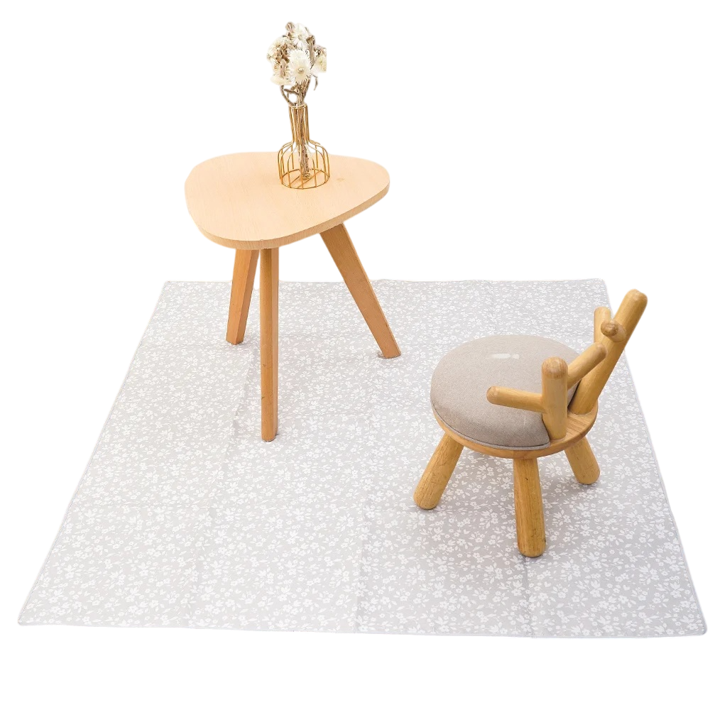 Children's Mat 110 × 110 cm Grey with White Flowers Waterproof Folding Washable Mat with Non-Slip Silicone Base
