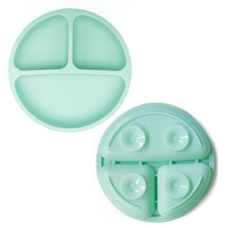 There are four small suction cups on the bottom of the plate. This prevents the plate from being overturned. Suitable for small children and babies. Also suitable for microwave use.