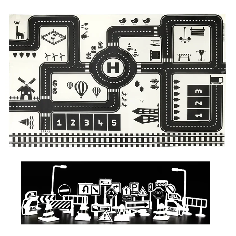 • Contents: 1x children's play mat 83 x 57 cm with a design of roads and signs