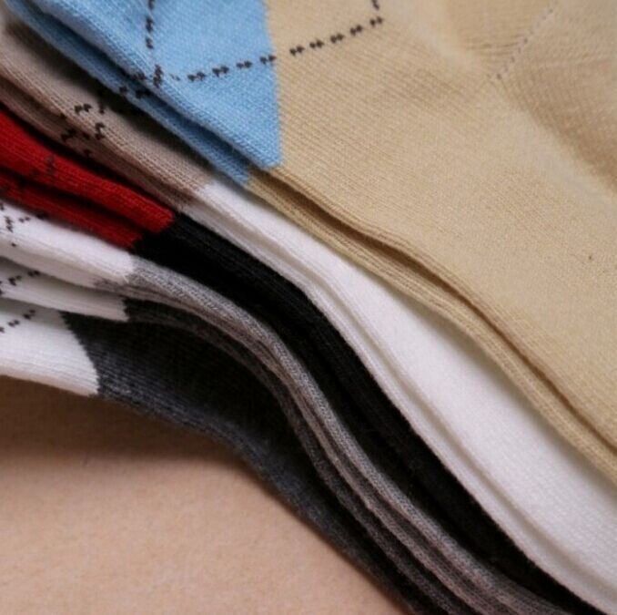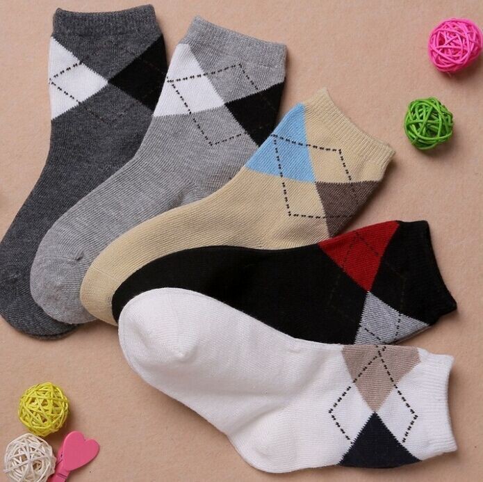Children's socks with a diamond pattern.