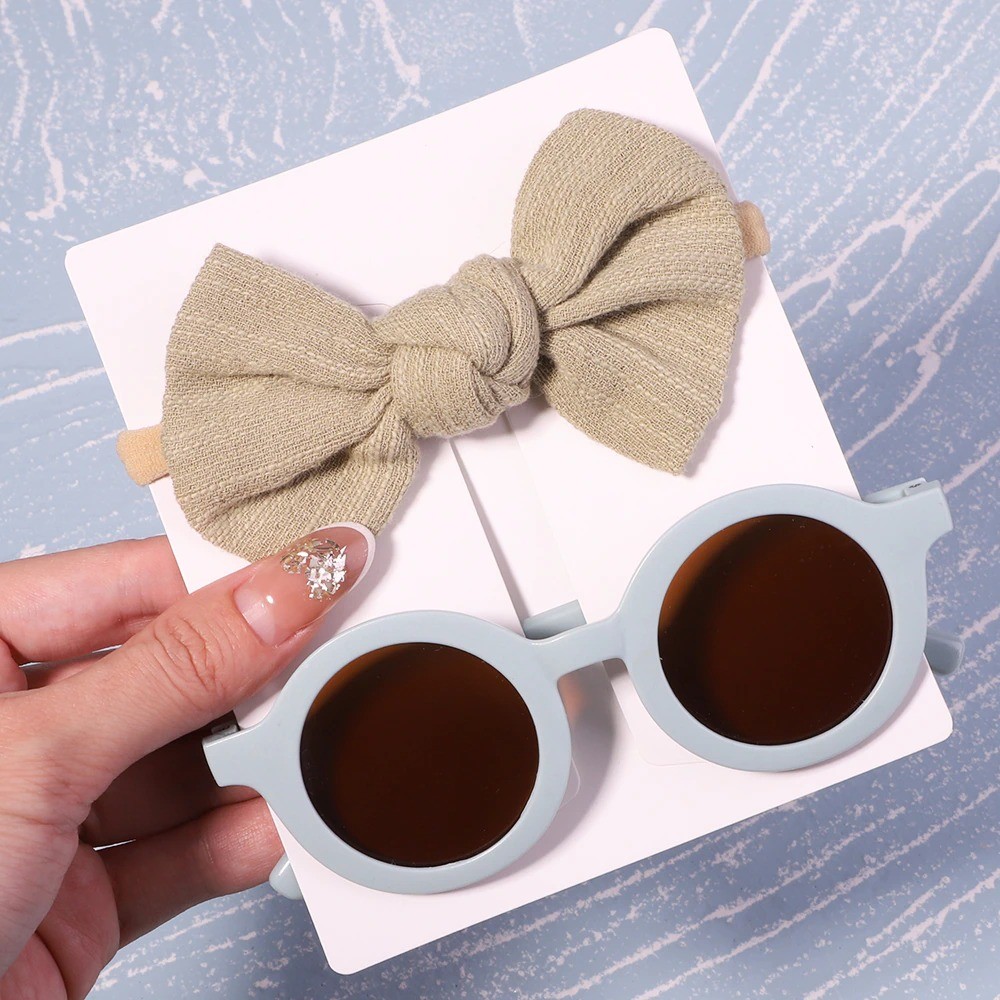 Dimensions of the glasses: 12.5 x 5. The package includes sunglasses and a bow on an elastic band. A suitable accessory for all children during the summer season. Full description