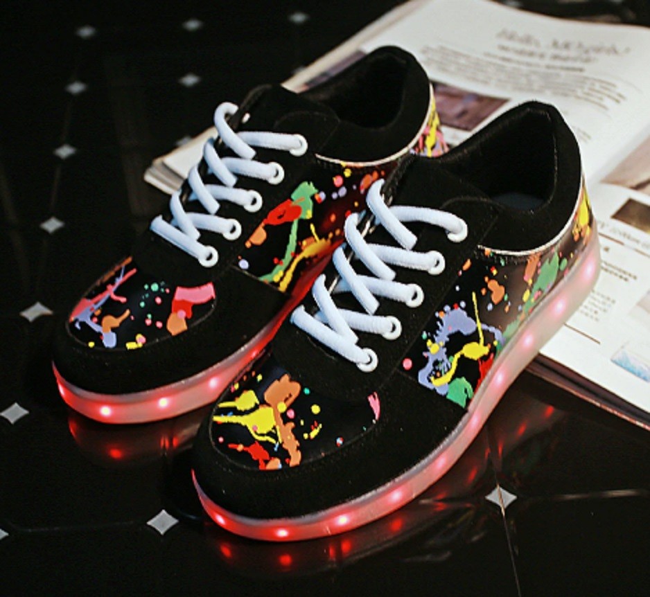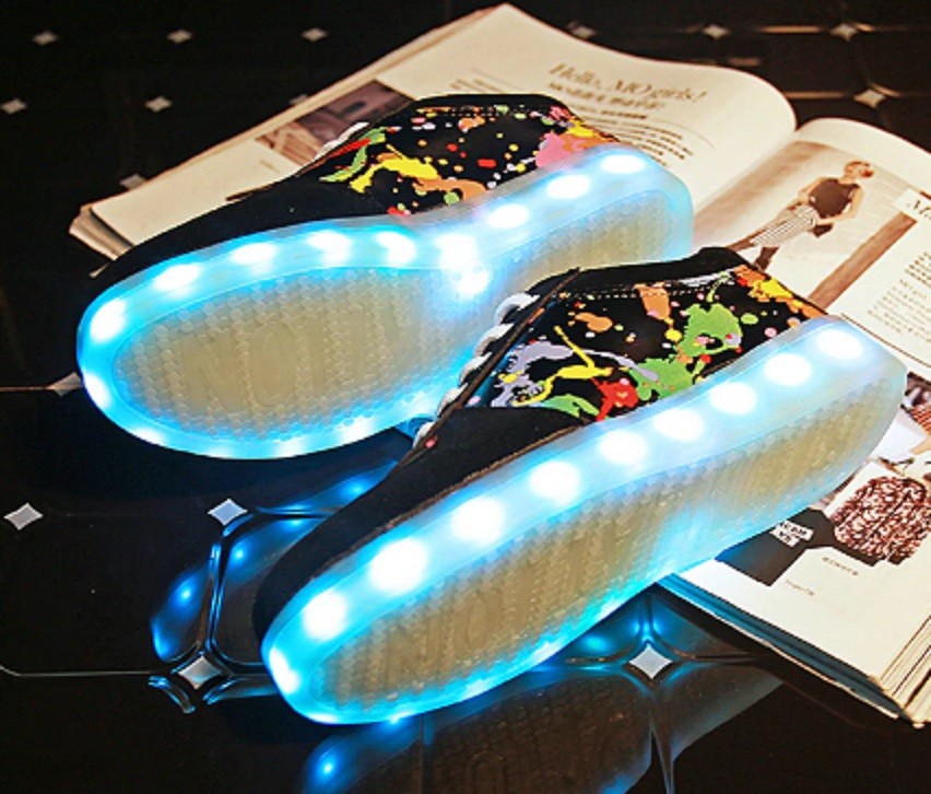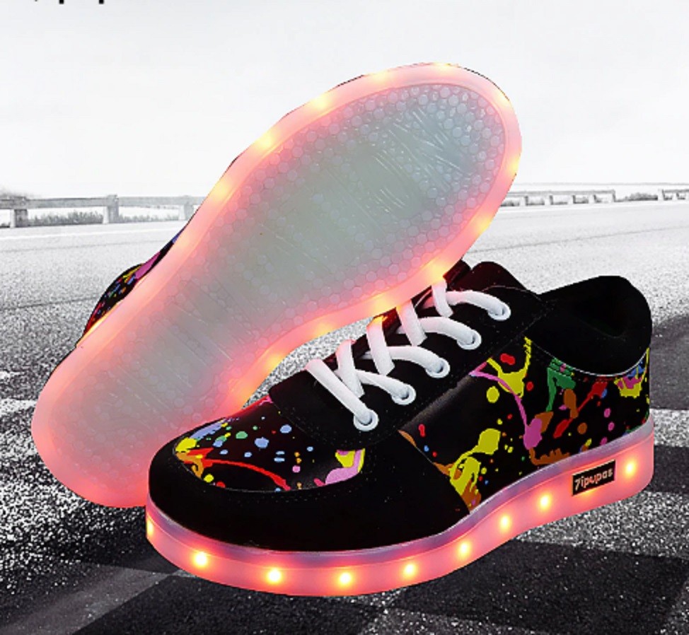 There are LED lights in the soles of these trainers, which recharge via USB.