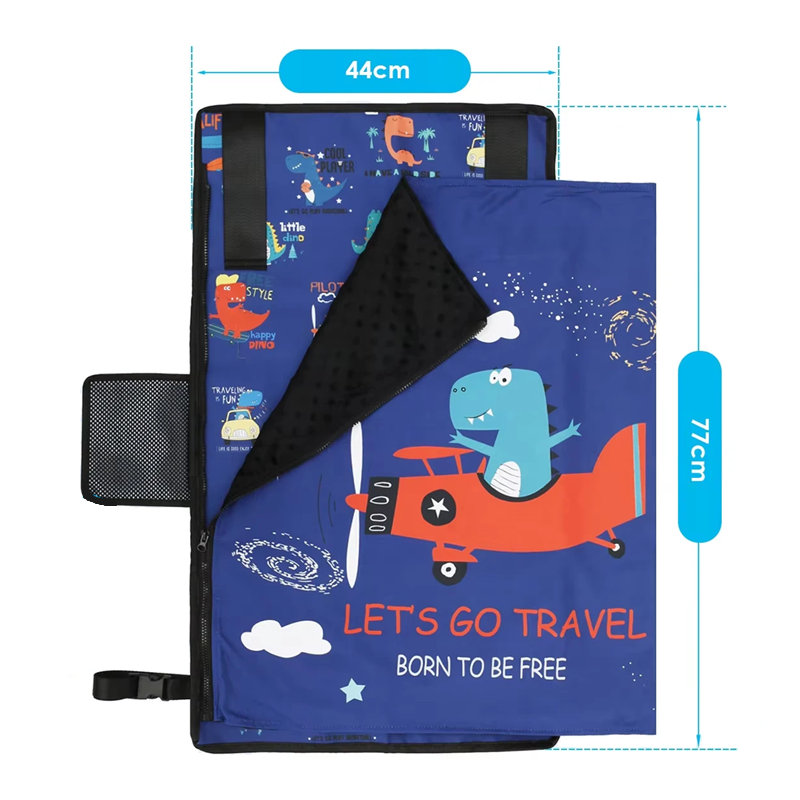 Travelling with children can be a challenge – this children's travel tray for airplanes brings comfort and fun right on board. With dimensions of 79 x 44 cm, it provides ample space for drawing, playing games, or snacks during the flight. Made from durable Oxford fabric that is easy to clean, it is the perfect choice for any parent who wants to keep their child entertained and happy even during long journeys. Thanks to its folding design, it can be easily transported and stored in carry-on luggage.
