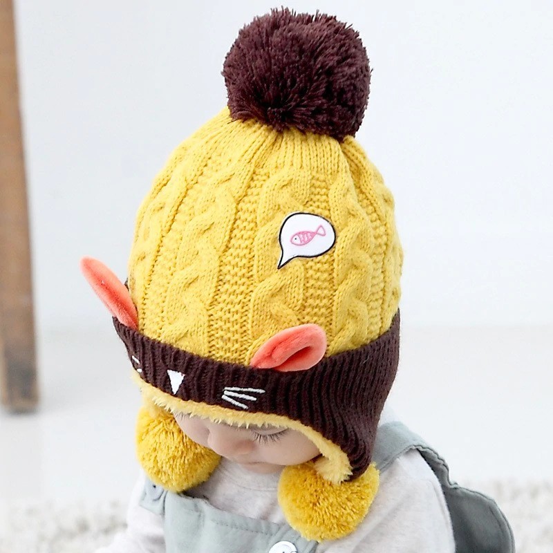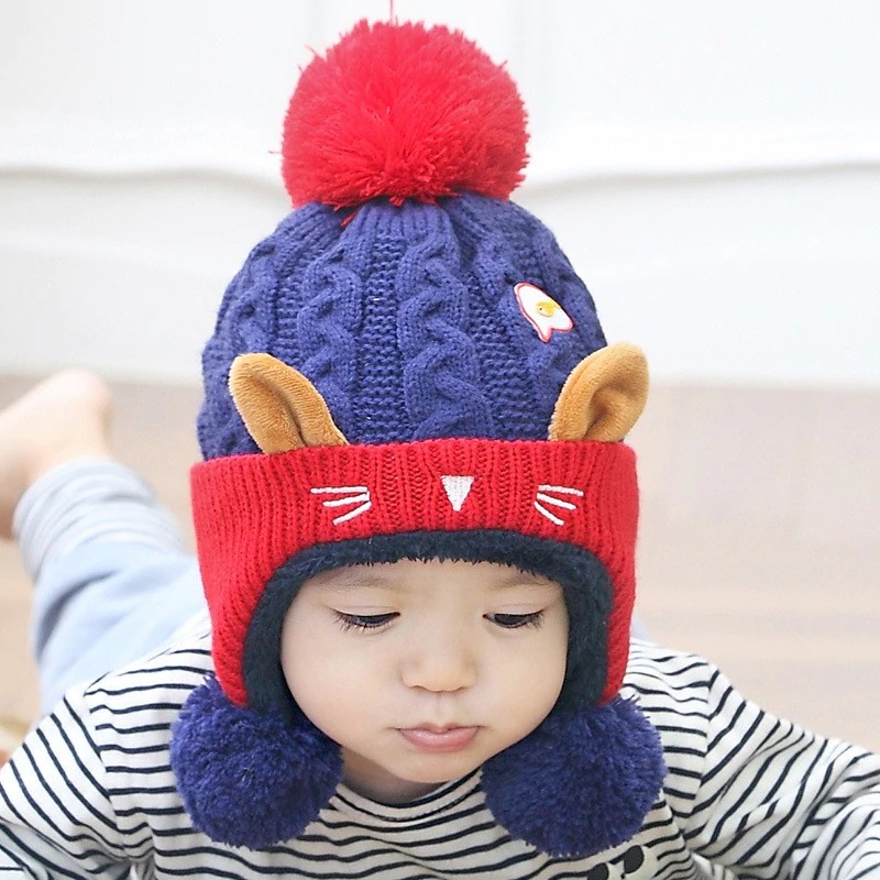 Children's Winter Hat with Pom-Pom and Ears J865