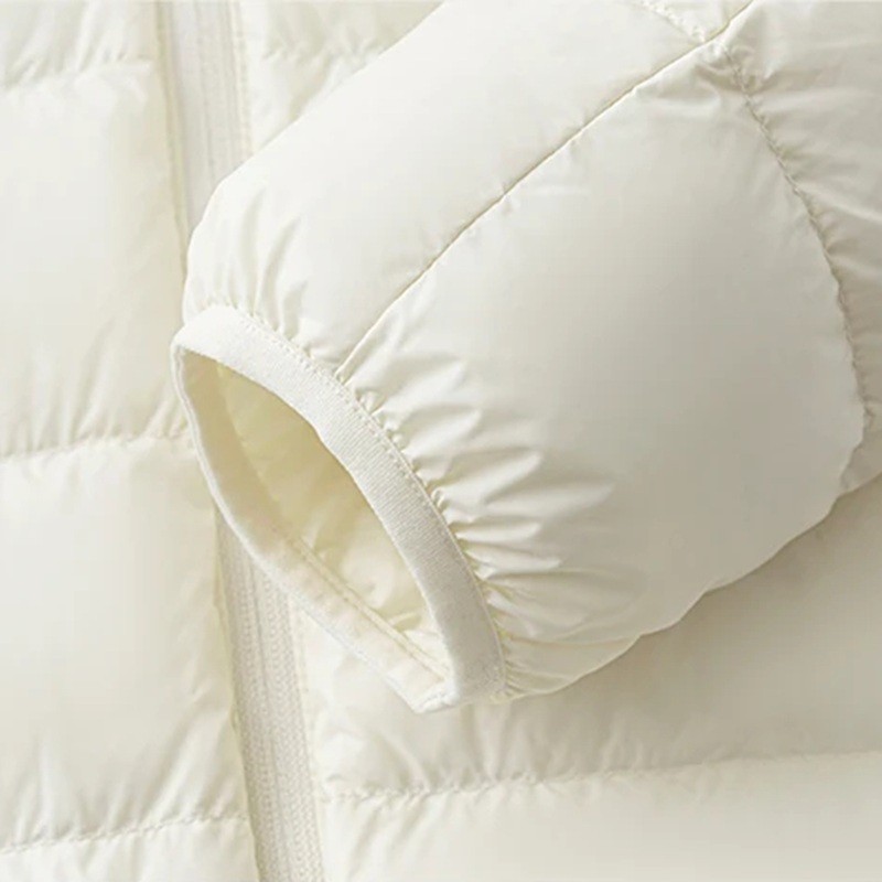 This children's winter jacket is the ideal choice for the cold season due to its combination of lightness, durability, and comfortable fit. The plain design looks elegant and is easy to combine with other winter clothing. The hood provides reliable protection against the wind and low temperatures, and high-quality nylon material ensures long-lasting durability against winter conditions. The zip fastening allows for quick dressing, which both children and parents will appreciate during everyday use. The practical pockets are perfect for warming hands or storing small items that children want to keep close at hand.