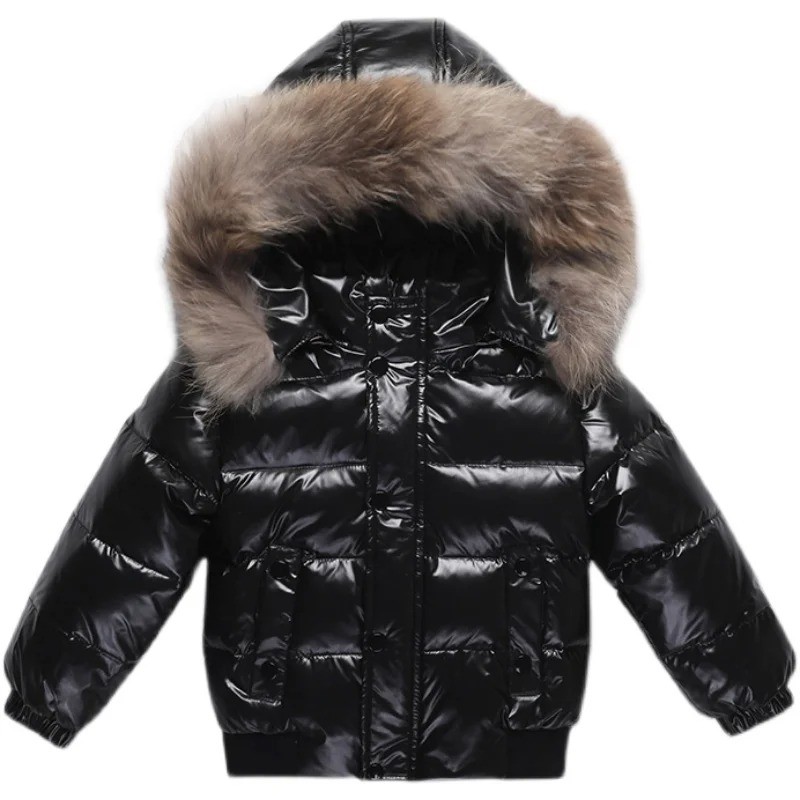 Warm children's winter jacket with a fur hood, pockets, and a combination of down, cotton, and polyester fibre. A great choice for winter weather. Full description