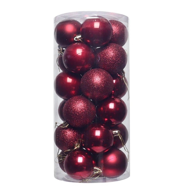 The pack contains three types of baubles, a total of 24 pieces. Diameter of bauble: 3 cm. Full description