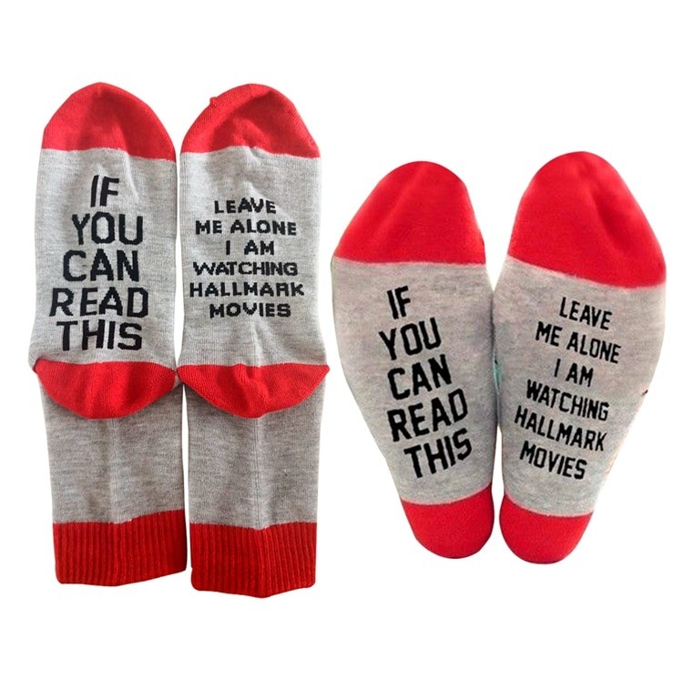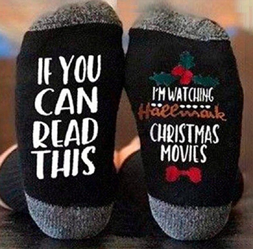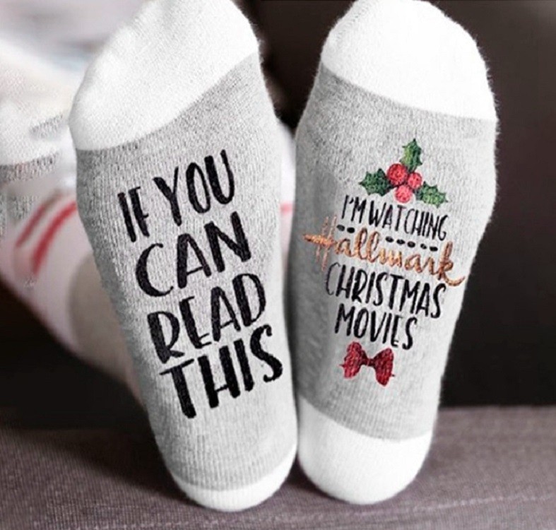 Unisex cotton socks with a humorous inscription and Christmas theme.