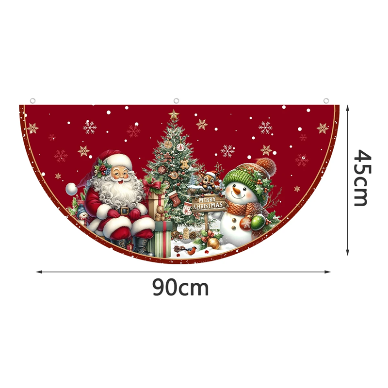Christmas Half-Crescent Flag Banner 90 x 45 cm Red Outdoor Hanging Decoration with Snowman, Santa and Christmas Tree