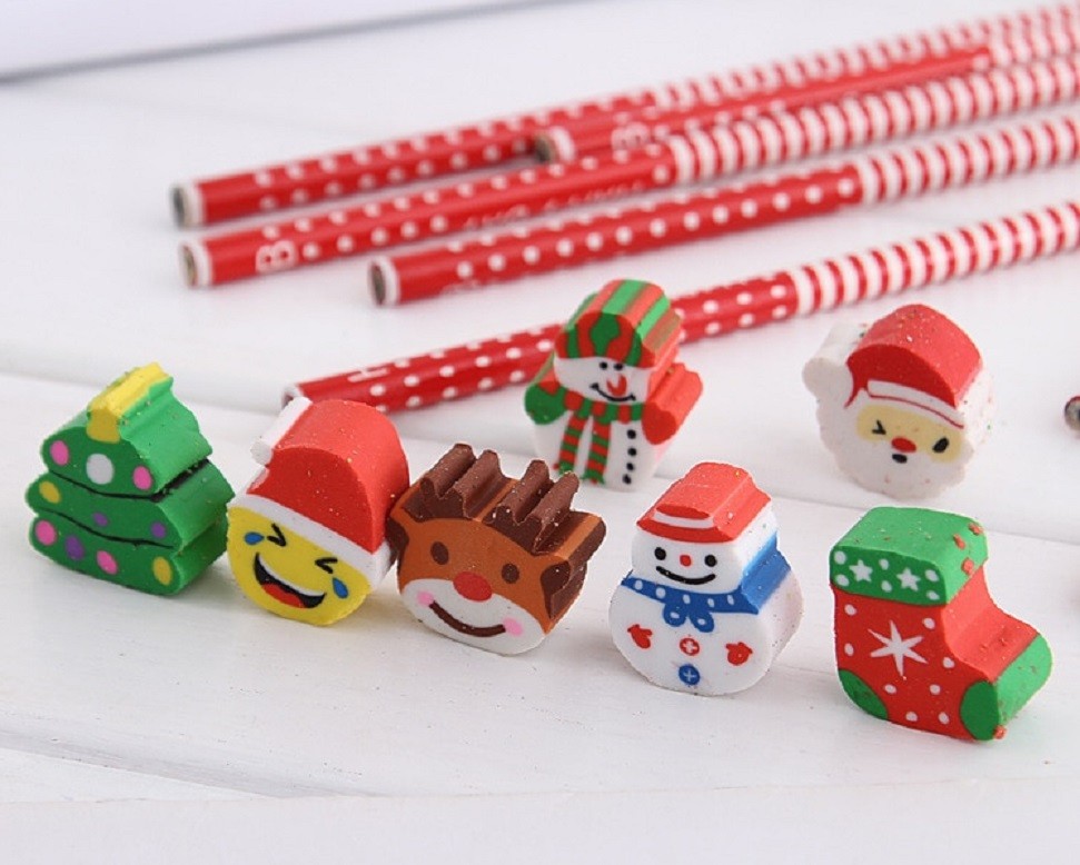 Cheerful Christmas pencils with erasers for rubbing out.