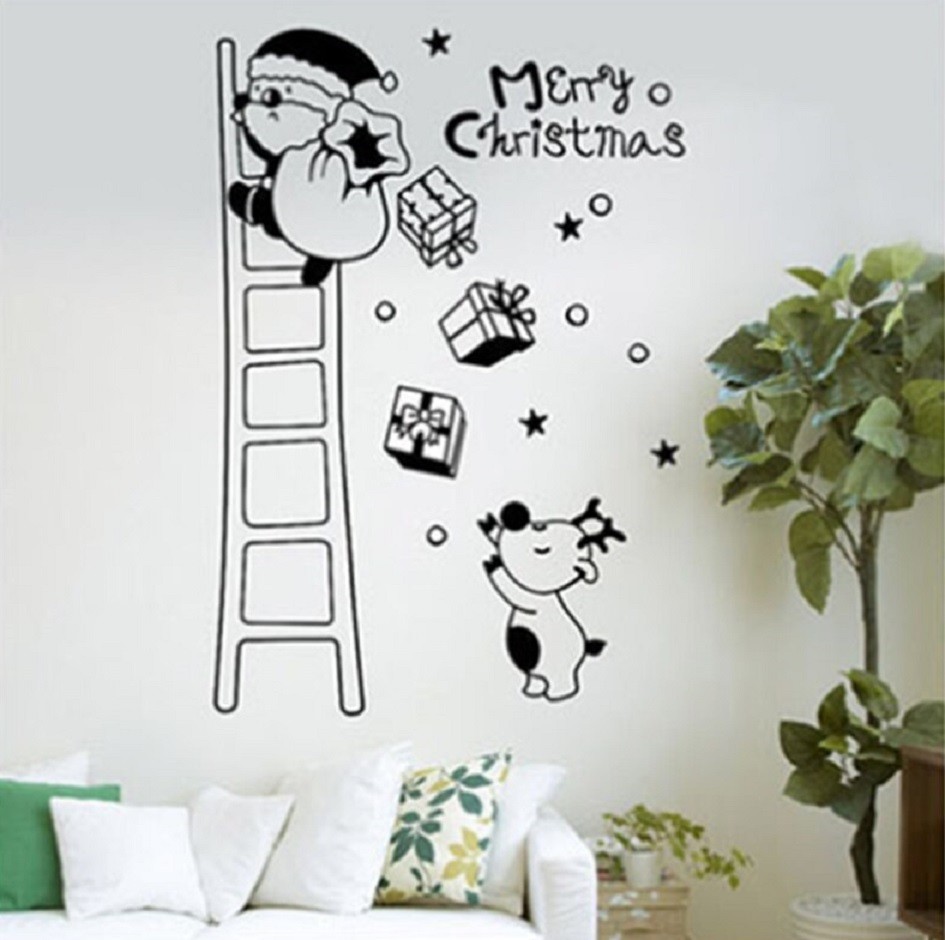 Large Christmas decorative sticker - Santa Claus on a ladder.